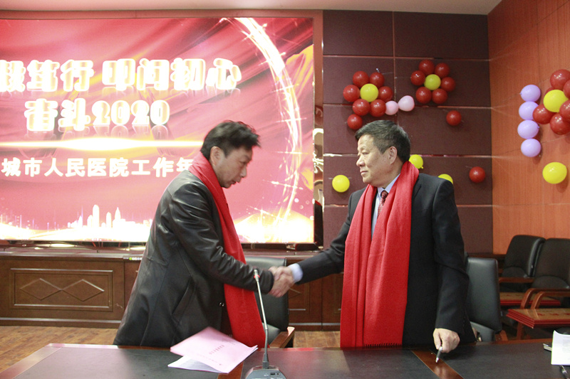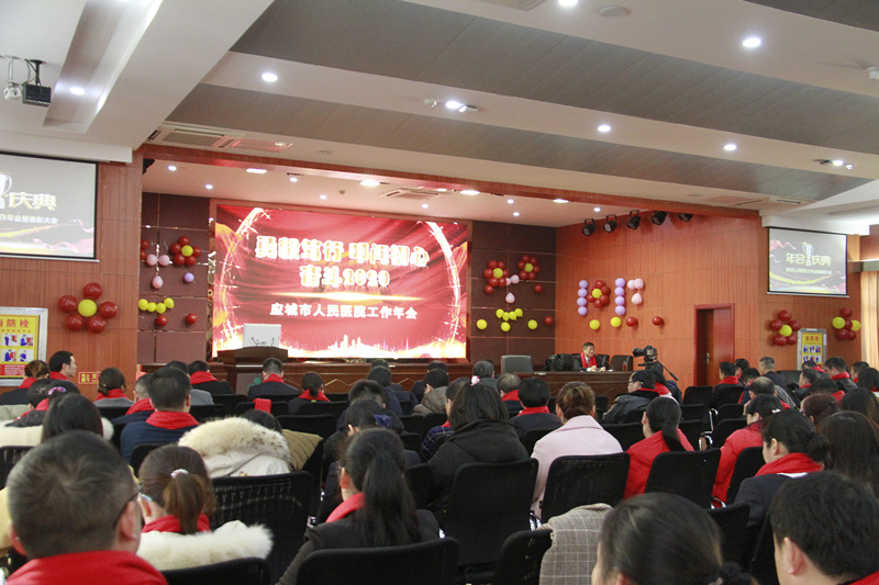 一色的正装,一色的火红围巾,人手一面小国旗,腊月二十七上午,医院七号楼学术报告厅群情激昂,2019工作年会如期召开,市卫健局局长柳红斌亲临现场并做重要讲话。