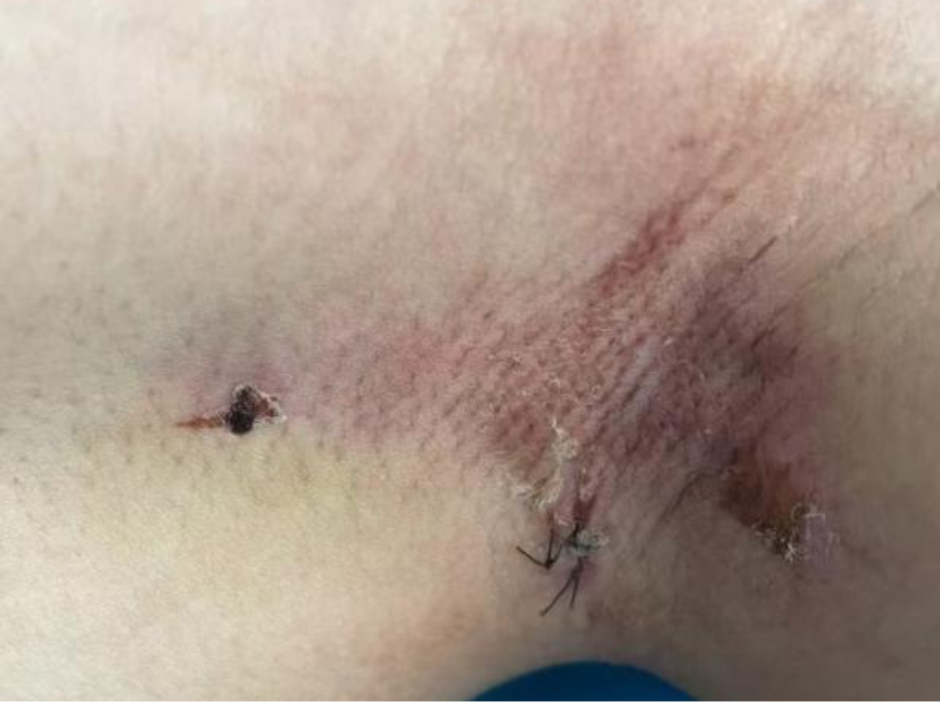 术后护理:术后需要进行伤口加压包扎,并缠绕“8”字形绷带,每2到3天换药1次,保持伤口清洁干燥,避免剧烈运动,10-14天拆除伤口缝线。(图/文 宣教科 皮肤科 医疗美容科)