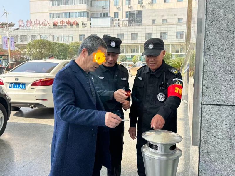 市人民医院保安温情劝烟 为文明城市创建添砖加瓦