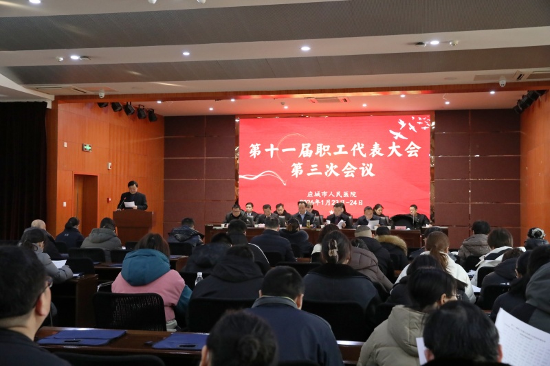 1月23日至24日,医院学术报告厅氛围隆重而热烈,第十一届第三次职工代表大会在这里如期召开。应城市卫健局工会主席徐爱军,应城市人民医院党委书记姚海泉、应城市人民医院院长王林风、应城市人民医院工会主席何军等出席大会,来自全院各科室的一百多名职工代表、列席代表及特邀代表齐聚一堂,共商医院发展大计。