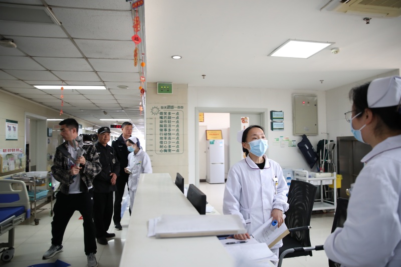 演练模拟一名83岁患有脑梗死合并认知障碍的“患者”在科内走失。医护人员立即启动应急预案,逐级上报的同时在病区内展开“地毯式”寻找。此时保卫科通过调取院内监控视频,发现老人已离开院区。