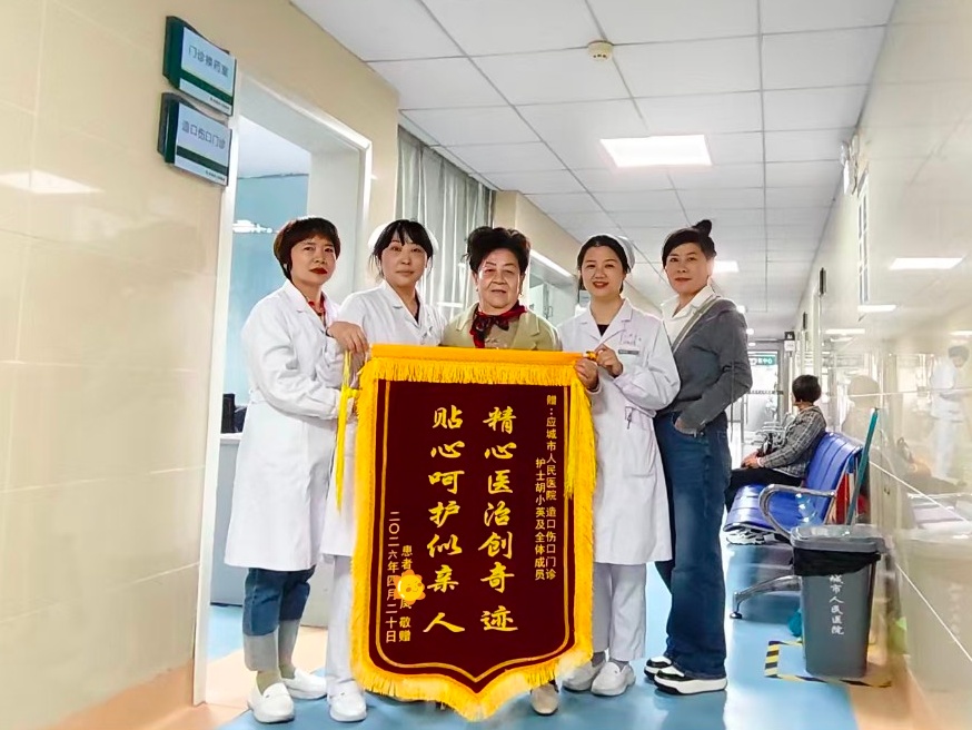 近日,造口伤口门诊收到一面锦旗——“精心医治创奇迹,贴心呵护似亲人”。这面锦旗来自一位76岁高龄的熊奶奶。
