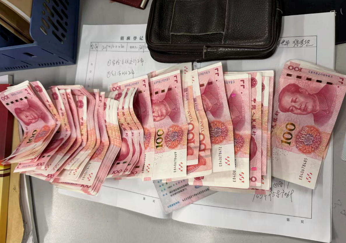 就在刚才,16:45分,应城市人民医院保安在该院“健康广场”例行巡逻时发现地上一个棕色小包,打开一看,一沓现金赫然印入眼帘。经集体清点,发现包内还有身份证社保卡以及人民医院收费凭据,保卫科迅速通过相关科室查询到失主联系方式。拨通电话时离事发仅10分钟。