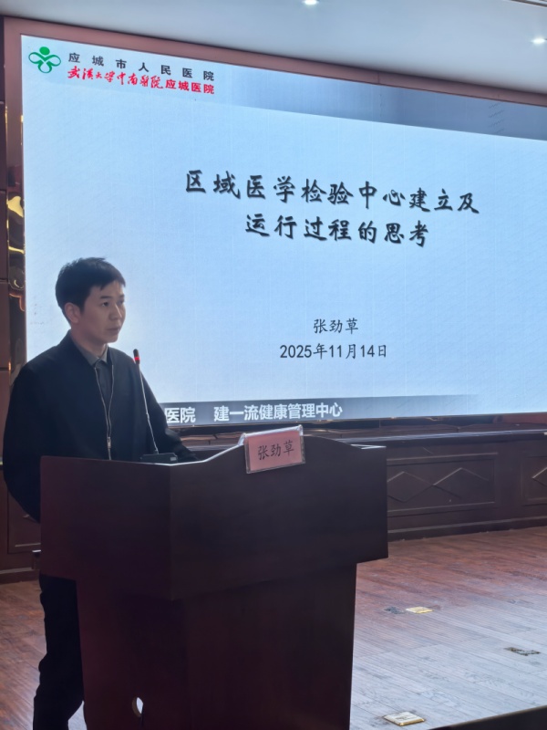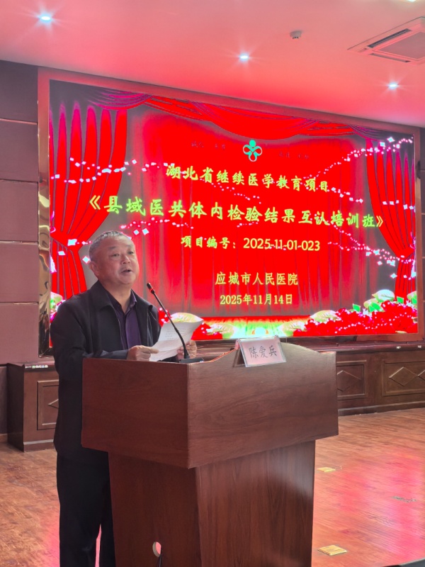 为深入推进医共体建设,促进优质医疗资源共享,2025年11月14日,由我院检验科筹办的“县域医共体检验结果互认继续教育培训班”在医院学术报告厅举行。应城市卫生健康局医政股股长陈爱兵、应城市人民医院副院长刘浩出席并讲话。