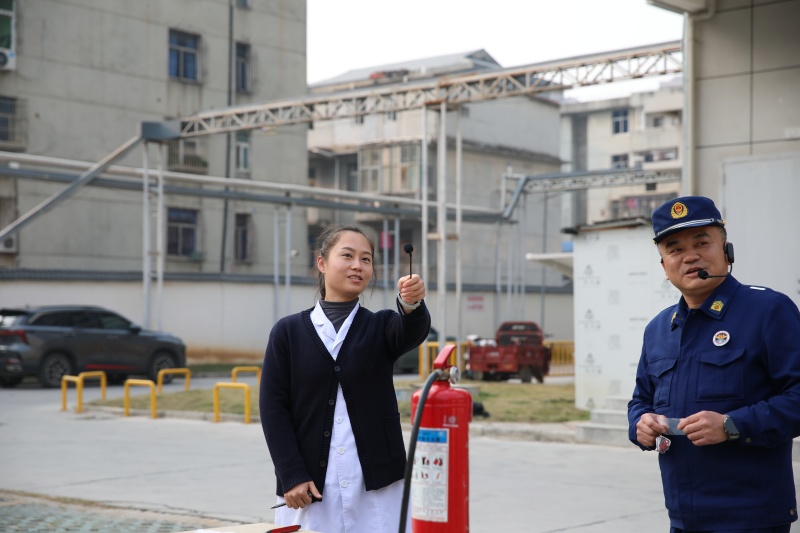 本次演练以“理论培训+实际操作”相结合的方式,首先由应城市消防救援大队教官通过案例分析讲解医院火灾特点,随后演示了灭火器材使用规范,同时现场展开有奖问答。