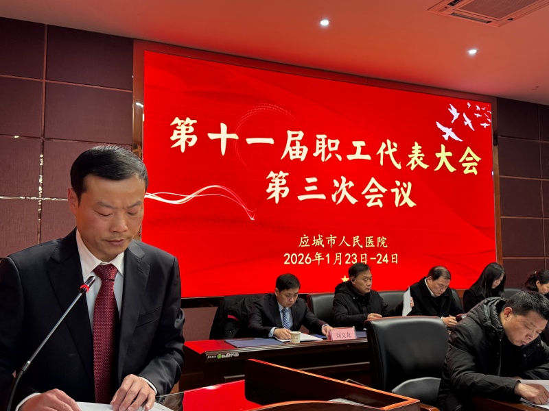 1月23日至24日,医院学术报告厅氛围隆重而热烈,第十一届第三次职工代表大会在这里如期召开。应城市卫健局工会主席徐爱军,应城市人民医院党委书记姚海泉、应城市人民医院院长王林风、应城市人民医院工会主席何军等出席大会,来自全院各科室的一百多名职工代表、列席代表及特邀代表齐聚一堂,共商医院发展大计。