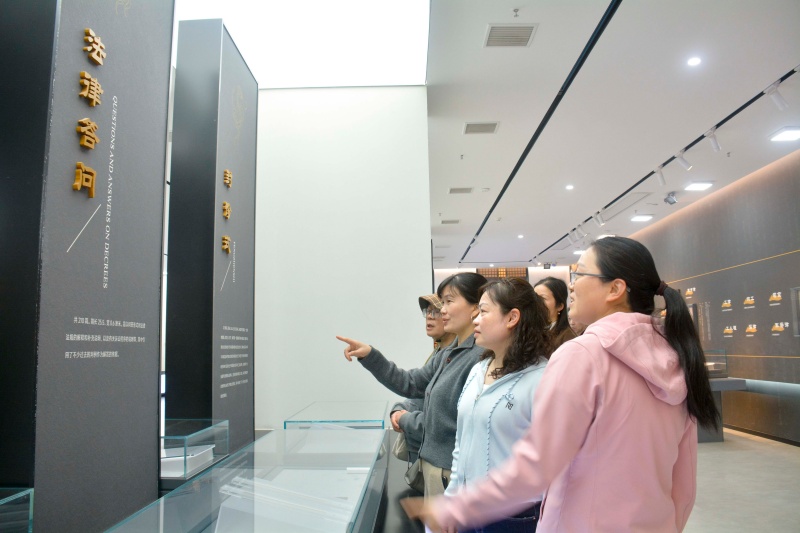 随后,大家重点研习秦简中的廉政律令与法治内涵。在《仓律》展区,秦代针对粮仓管理制定的细密严苛制度,引发现场热烈交流。秦律对粮食保管失职、损耗浪费等行为从严追责,彰显出古人“事皆决于法”、防微杜渐、恪尽职守的治理智慧,为现代医院管理提供了深刻借鉴。