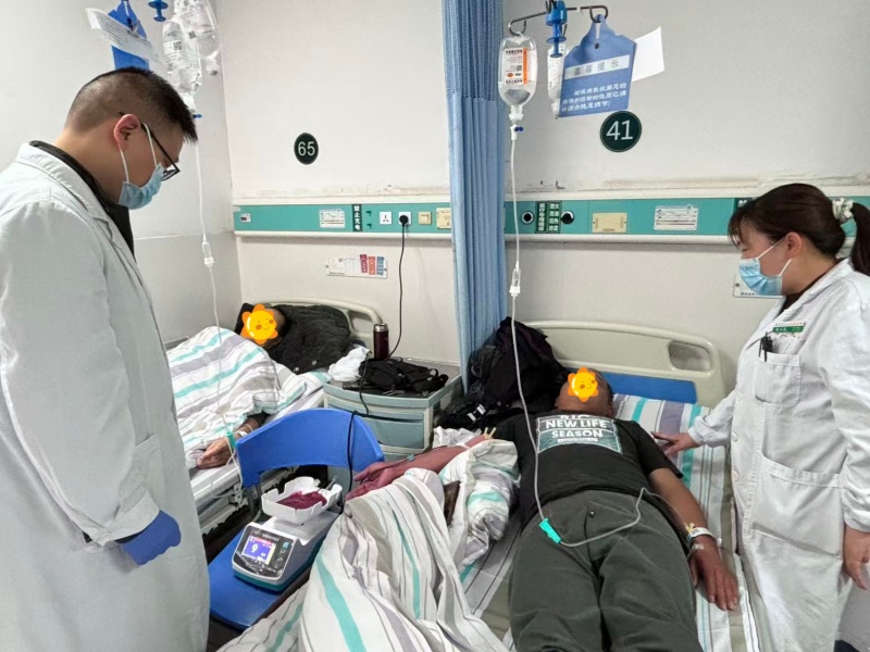 为快速缓解患者病情,降低健康风险,肿瘤血液内科医疗团队结合患者病史、症状及检查结果,经综合评估后,决定为其实施 “放血疗法”。在输血科马明主任的全程技术保障下,医疗团队为患者开展静脉放血治疗,在严格遵循无菌操作规范原则下,精准放出 393 毫升血液。整个过程平稳有序,患者全程无明显不适,生命体征稳定。